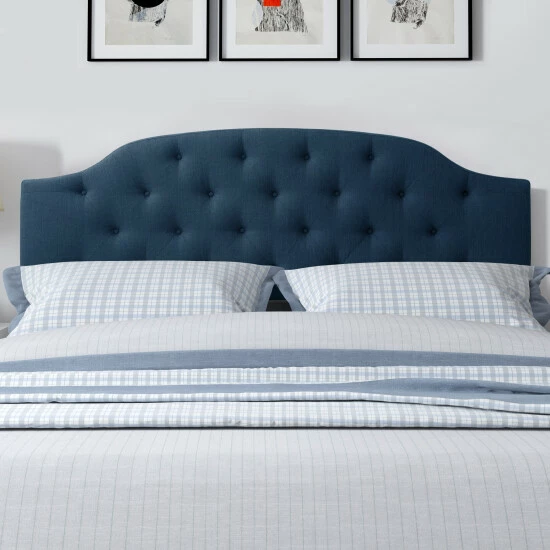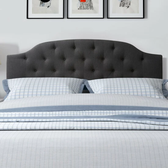 Give your safe haven a glamorous overhaul, with this beautiful, foam-padded upholstered headboard. A diamond button-tufted design with soft lines and a smooth arched silhouette that will be sure to impress. Beautifully upholstered in a soft fabric material, this versatile, low-profile headboard is equipped with easy-to-adjust legs to accommodate your bed and frame.