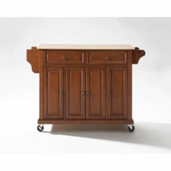 Behind the four doors of this handsome kitchen centerpiece, you will find adjustable shelves and an abundance of storage space for things that you prefer to be out of sight. The heavy-duty casters provide the ultimate in mobility, while the unique styling and quality craftsmanship make for a piece to treasure for years to come.