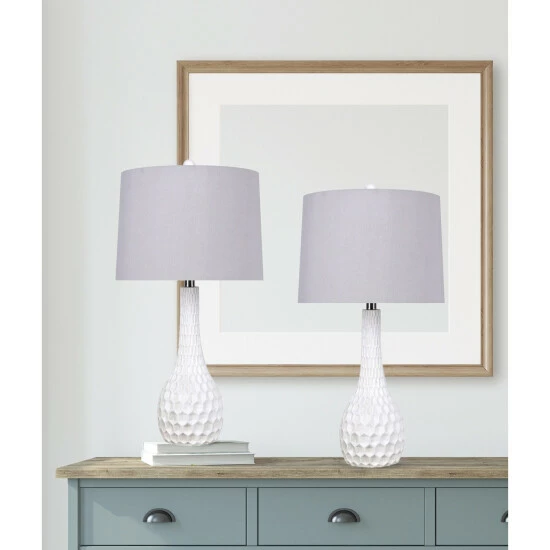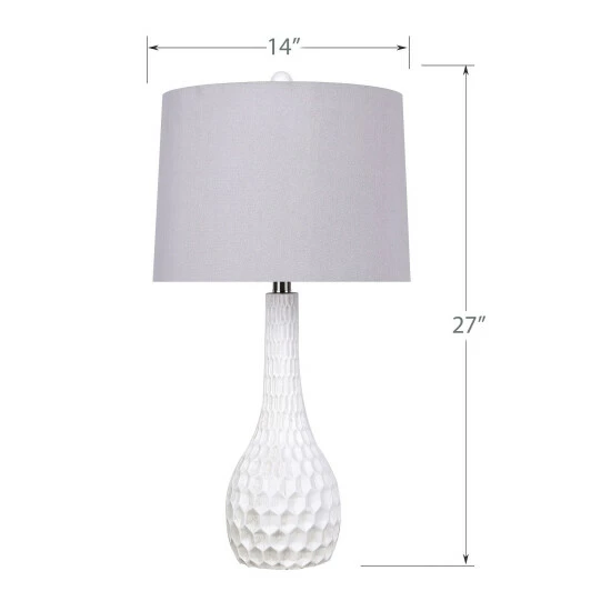 Offering a sumptuously appealing and undoubtedly chic silhouette, this polyresin table lamp makes your space come alive. With a curvaceous polyresin base and a cylindrical linen drum shade, this lamp is bound to stylize your space and illuminate your conversations.