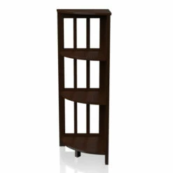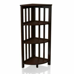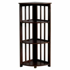 Display your books, vases, and decorative accents on the three open shelves and flat top of this corner bookshelf. Featuring a solid wood frame and dark walnut finish, this sturdy bookshelf perfectly complements your transitional style.