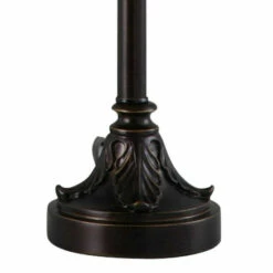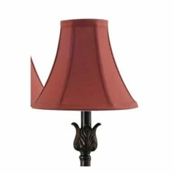 Accent your decor with the beautiful, elegant style of this table lamp set. Each lamp features a bronze-finished metal body with intricate detailing paired with burgundy fabric bell shades.