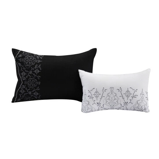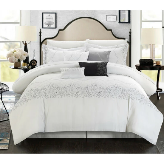 - Comforter, bedskirt, 2 shams, 2 filled 18-inch square cushions, 1 filled 20-inch square cushion, breakfast pillow