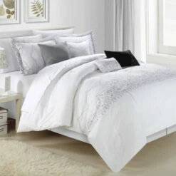 Soft, pretty, and graceful, this comforter set lends a touch of effortless elegance to any bedroom. The versatile colors can be matched to any decor schemes, and the polyester is durable through years of washing.