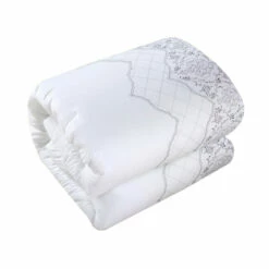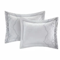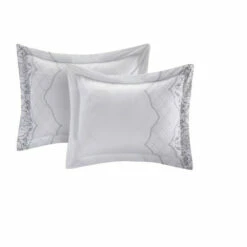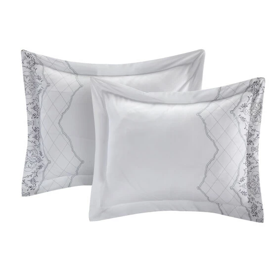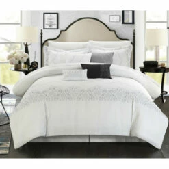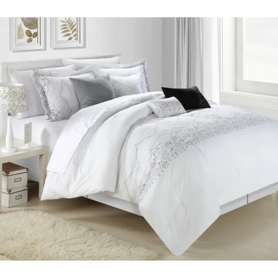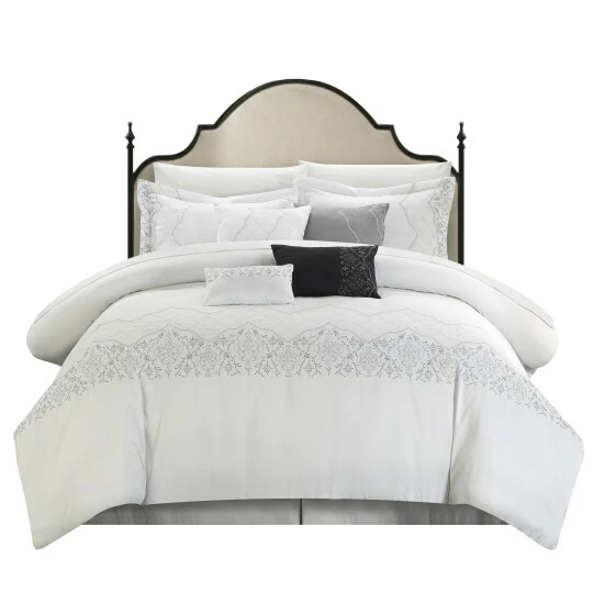 Makeover your guest bedroom with the Klaskish Comforter Set. The vintage-style comforter features a gray embroidered pattern on a clean white background that is accented with two decorative shams and a gray breakfast pillow. This 12-piece set has everything you need to outfit a bed and can be machine washed when your next guest comes to stay.