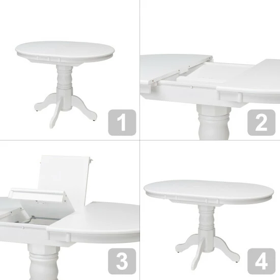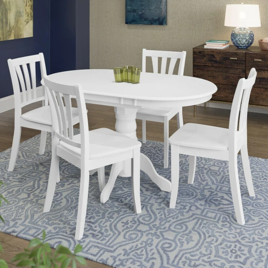 Provide extra serving space with this expandable dining room table set, featuring a butterfly leaf insert that stays hidden under the table for quick access. This set includes four matching chairs for easy, coordinated decorating.