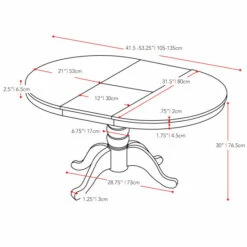 - Table: 31 inches long x 41 inches wide x 30 inches high (extends from 41.5 to 53.25 inches long)
