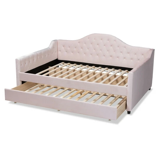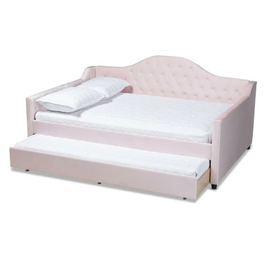Relax and rest during the day or provide guest accommodations at night with this contemporary trundle daybed. This daybed has foam padding for support and velvet upholstery for softness.
