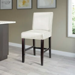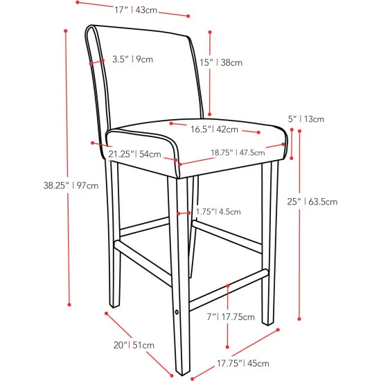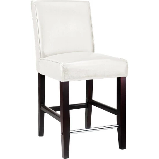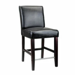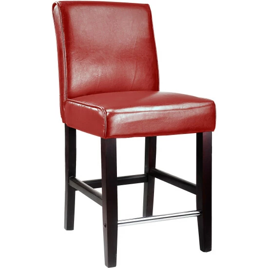 This bar stool is the perfect way to relax indoors at a 32-39 inch bar height. Easy to wipe clean, the tough bonded leather seat and sturdy hardwood legs are finished in a dark espresso stain with a practical chrome footrest. The high back seat design will add comfort, support and style to your kitchen, bar or dining room and compliment a warm transitional design. This well constructed bar stool offers great value to make the most of your indoor dining space.