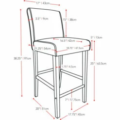 - Seat: 25 inches high x 18.75 inches wide x 16.5 inches deep
