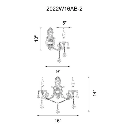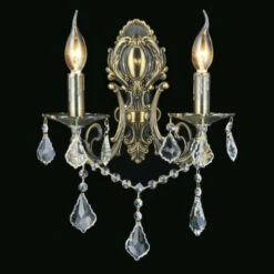 This breathtaking 2-light Wall Sconce with Antique Brass Finish is a beautiful piece from our collection. With its sophisticated beauty and stunning details, it is sure to add the perfect touch to your decor. – Dimensions: H 14 inches x W 9 inches x D 16 inches – Antique Brass Finish – Requires 2 E12 Bulbs Max 60 W (sold separately) – Traditional Style