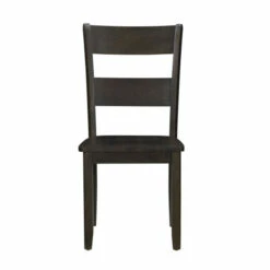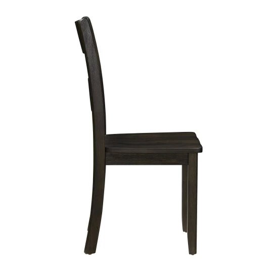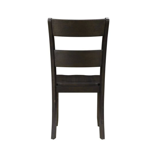 Pair your dining table with this set of two side chairs. Built from wood and coated in a distressed walnut finish, these chairs fit into your elegant or homey dining room. The slatted ladder back supports your torso and allows air to flow, and four flared legs prevent tipping.
