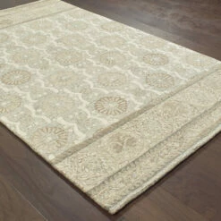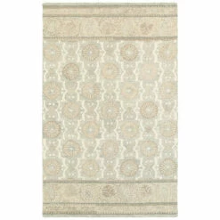 Revive the Scandinavian style of your living area with this Lalemant area rug from Copper Grove. Rendered in grey and Beige, Cream colors, the rug is hand-tufted from wool for moderate traffic durability and sophisticated appeal. The blossom and geometric pattern with a swirling leaf border completes this charming rug. To maintain the look and feel of your rug, blot spills immediately with a clean white cloth, vacuum regularly and spot clean using a mild soap made for the specific rug fiber. Professionally clean occasionally or when heavily soiled.