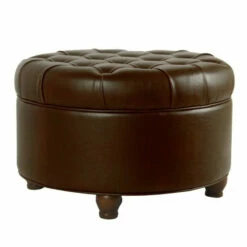 Draw some interest while kicking up your feet with the positively handsome design of this ottoman. Foam cushioning and sleek faux-leather upholstery offer transitional beauty and plush comfort, while the wood frame withstands consistent use. The ottoman has a tufted lift-off lid, revealing spacious storage that lets you keep small items out of sight.