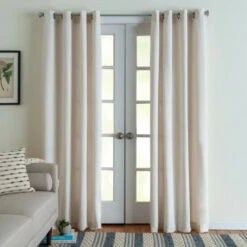 The Laocai panel from Copper Grove is a solid color specialty weave fabric for an upscale look. 72% Polyester, 14% cotton, 14% rayon. Light filtering. The grommet top allows for easy installation.Install on up to a 1-in curtain or decorative rod. Unlined.Machine wash cold gentle cycle, wash with like colors, use mild detergent, do not bleach, tumble dry low, cool iron if needed. Each panel sold separately.