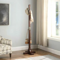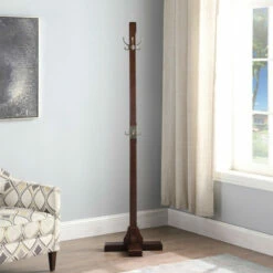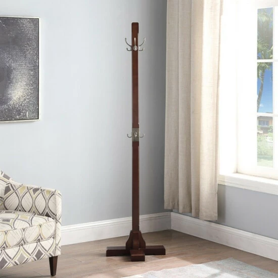 This standing 72″ Coat Rack, walnut color finished birch veneer and antique finished hardware bring out an elegant Classic look.