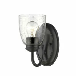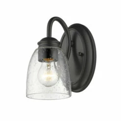 Illuminate your bathroom with steampunk style using this Parrish single-light seeded-glass and black steel fixture. Featuring a classic Victorian style, this retro light pairs beautifully with Edison bulbs in a transitional bath.