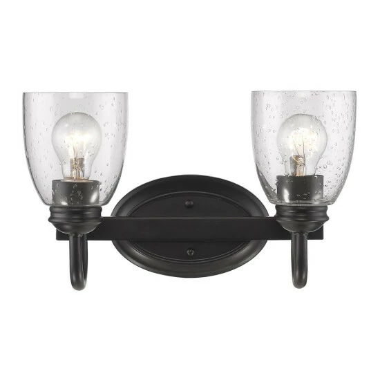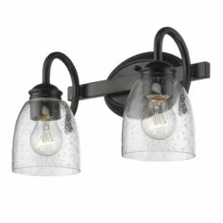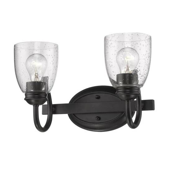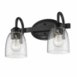 Illuminate your vanity area in traditional style with this two-light fixture. Seeded glass adds a touch of texture for interest, and smooth black finish helps the steel fixture stand out.
