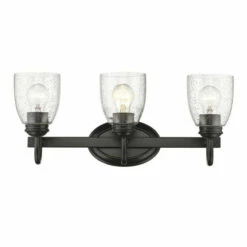 Upgrade the lighting design in your master bath with this three-light vanity fixture. Made from steel for sturdy durability, this versatile fixture with seeded glass shades mounts as an uplight or a downlight for extra flexibility.