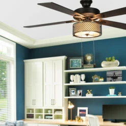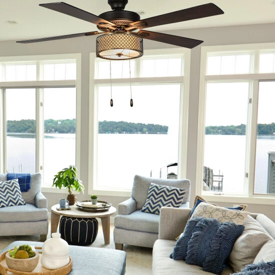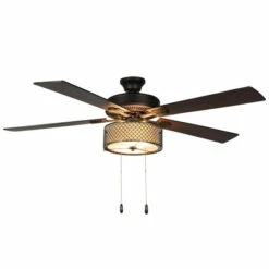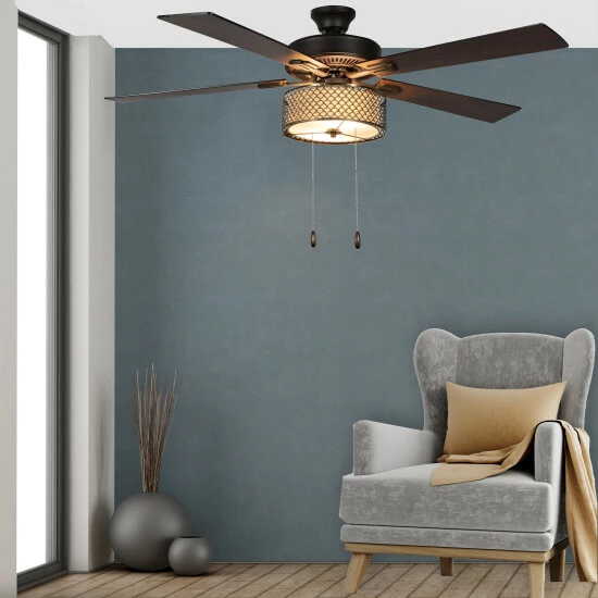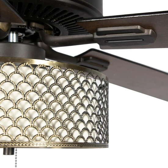 This strikingly elegant and timeless alabaster 52-inch LED ceiling fan offers a calming and casual feeling to your home with its metal mesh shade. The two gleaming lights add ambiance to your home office, living, or bedroom space, as the three-speed reversible motor allows you to circulate cool air or heat all year round, for a piece sure to please.