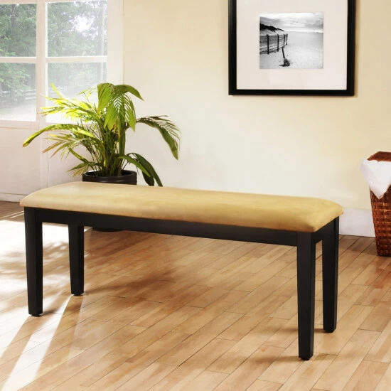 Add this stylish microfiber cushioned bench to your dining set for additional seating. This bench is also the perfect addition to your front hallway to give guests a place to sit while they are taking off their shoes. The microfiber fabric feels soft against your skin, while the black finish pairs well with any decor. The microfiber cushioned bench is large enough for several people to sit on at the same time.