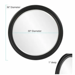 Give your bathroom depth and dimension with this stunning round wall mirror. Featuring a matte black, wood frame, this ready-to-mount mirror brightens your living space and exudes transitional charm.