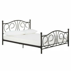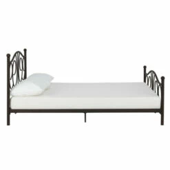 Add a creative and elegant piece to your bedroom with this finial detailing queen bed. This bed features whimsical curves and a cheerful design that will instantly upgrade any bedroom setting. A metal slat system provides support without the need for a box spring while allowing air to flow through so that mattresses stay fresher longer. Available in a bronze finish, you are sure to get the right color for your bedroom decor.