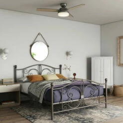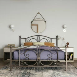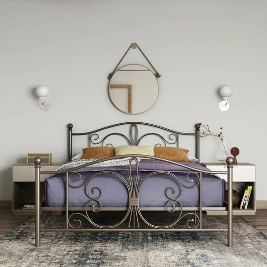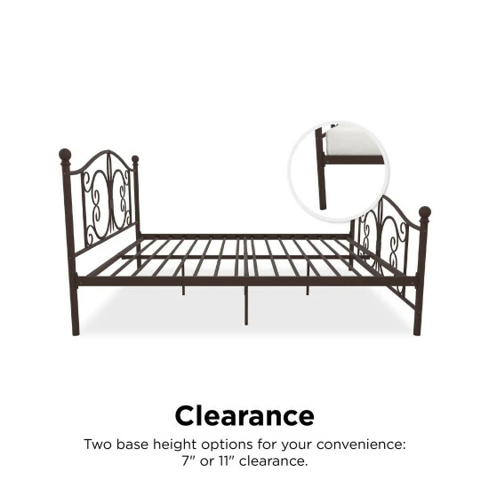 Give your room a spacious feel with this Copper Grove queen-size bed. Finial detailing and stunning curves lend traditional beauty, while the open-style design promotes airflow for comfort. Featuring two base height options, this bed supports simple adjustment, while the sturdy metal frame provides exceptional strength.