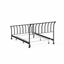 Lend a touch of traditional style to your bedroom decor with this Lotus full-size bed from Copper Grove. Crafted from metal, the bed features sleigh-style foot and headboards with curved spindle rails. The side legs are accentuated with simple, scrollwork detailing that completes the elegant sophistication of this beautiful and durable bed.