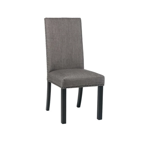 Create extra seating space in your dining area with these side chairs. Featuring an Asian hardwood frame construction for enhanced durability, these chairs have grey polyester upholstery that blends with the black legs for a transitional look in your space.