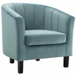 A fresh outlook on a familiar classic, this brings intrinsic luxury to your living space. This barrel back armchair comes upholstered in stain-resistant velvet polyester, and boasts chic channel tufting, updating the Chesterfield-inspired profile with retro modern design elements. The densely padded removable seat and backrest grant approachable comfort that beckons guests to sit and stay a while.