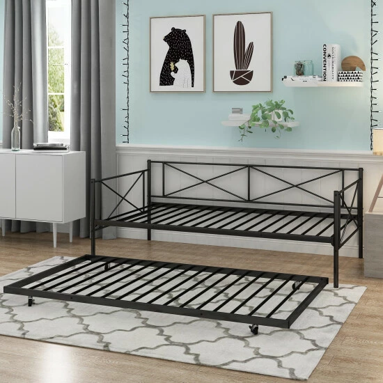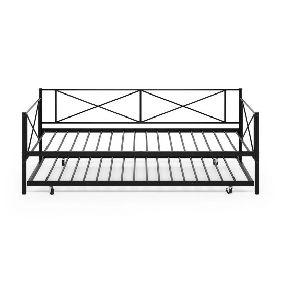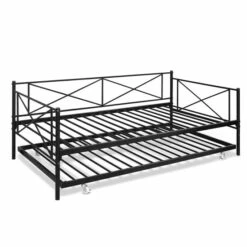 This daybed is designed for support, space saving and easy use. This multi-functional daybed that comes in a beautiful black finish serves well as a bed or a sofa. It is designed to fit in any space which is an ideal piece for a smaller home. The assembly of the bed frame is easy with the provided hardware and a clear step-by-step assembly instruction.Β