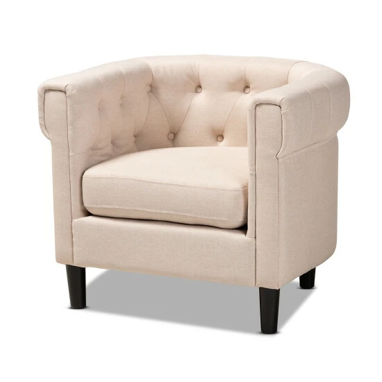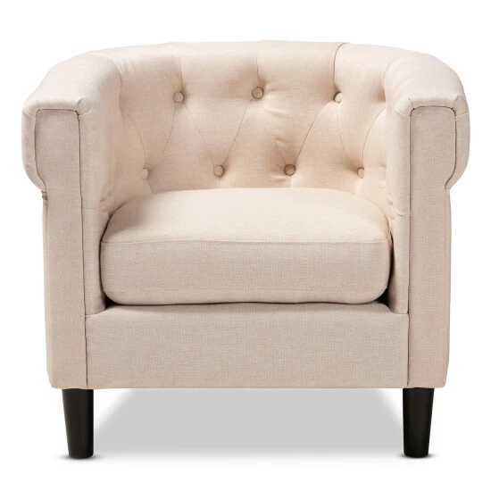 Situate this traditional fabric Chesterfield chair from Baxton Studio wherever you need a sitting place. The back of the chair is recessed deeply to provide serious comfort, while the dark finish and button-tufting of the upholstery invigorate any room with easy elegance and style.