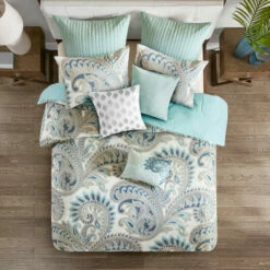 This fabulously alluring, three-piece cotton duvet cover mini set provides a wonderful contemporary accent to your bedroom. The wholly cotton set of one duvet cover and two shams is conveniently machine washable, and its printed paisley pattern, set in 200-count fabric, combines beauty, quality and comfort.