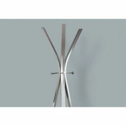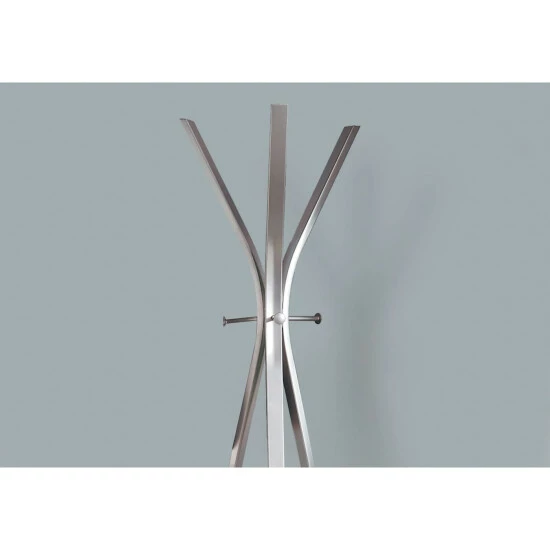 Make it easy to hang your jackets, hats, and bags with this coat rack. The curvaceous metal body features a silvertone finish for a handsome, contemporary look, and the rack comes with three hanging pegs for simple organization.