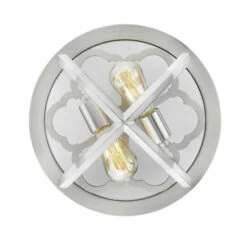 This fixture is an ultra-modern, transitional fixture, built with a unique design that was inspired by the interlocking, unique patterns of Celtic knots. The enclosure is finished with a smooth pewter coat, and features graceful, sweeping metal arches, which encircle the two-bulb body of the unit. The base is also finished with a unique, rounded geometric pattern, which brings to mind the Hindu and Buddhist mandala. The shadeless design and exposed bulbs provide maximum light exposure, making this an ideal fixture for kitchens, foyers, living rooms, and bedrooms. Both bulbs are also completely dimmable, ensuring that you have complete control over the lighting in your living spaces. The flush mount makes this light fixture low-profile, but the unique design demands attention, making this unique fixture the perfect accent for any remodel or home renovation