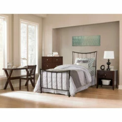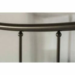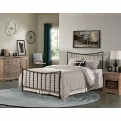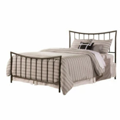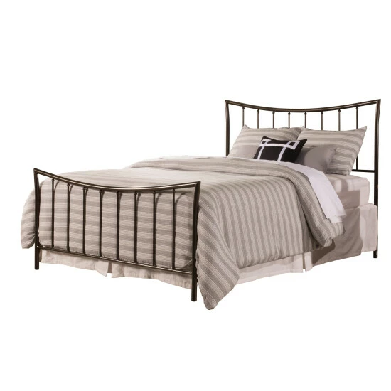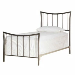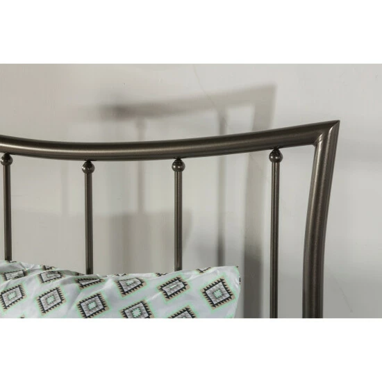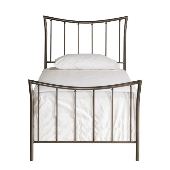Add a subtle accent to your bed with this bed set from Copper Grove. Made from metal, this set features a pewter finish and thin bars on the head and foot boards lead to subtle inverted tops. The neutral light brown color is timeless and will match nearly any decor.