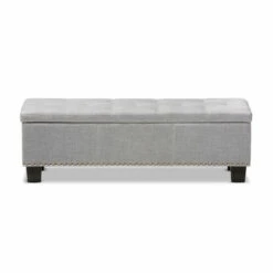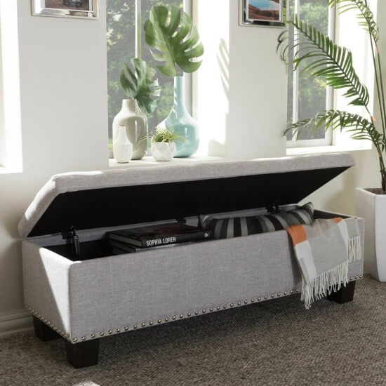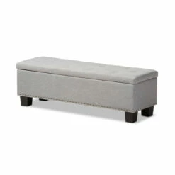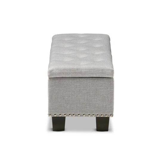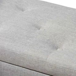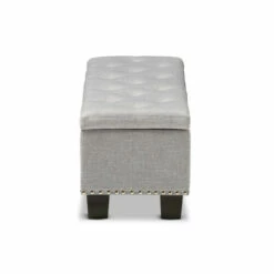 Place this Mendocino storage ottoman from Copper Grove at the foot of your bed for plentiful storage and a beautiful, sophisticated look. The Mendocino is upholstered in soft, grayish beige beige polyester fabric and button-tufted for that extra touch of elegance. Use it both as a place to store extra blankets and pillows as well as a place to sit in the morning while you tie your shoes.