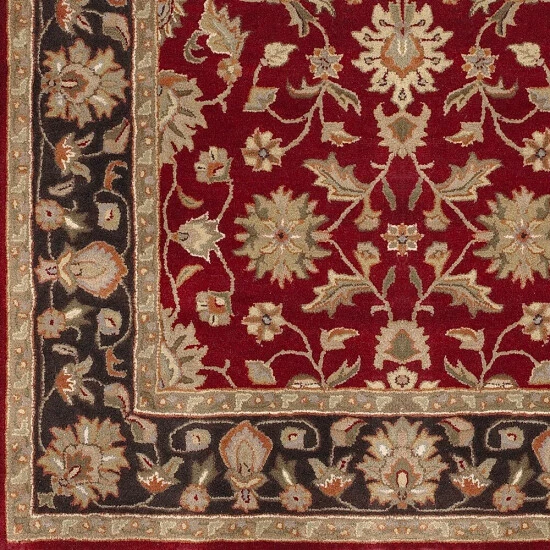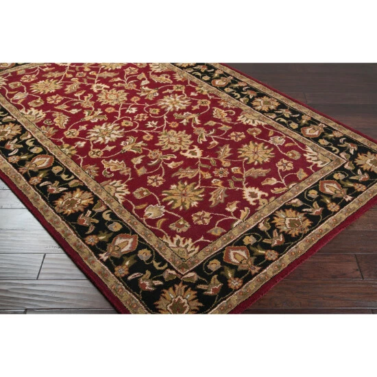 Crafted from wool, this Mertensia Area rug from Copper Grove will bring traditional style to your living room. The rectangular rug features a traditional floral vine pattern with intricate border, rendered in burgundy, black, rust, tan, fern, grey, and red colors. This comfortable rug stands up to moderate traffic durability, making it an excellent choice for your decor.