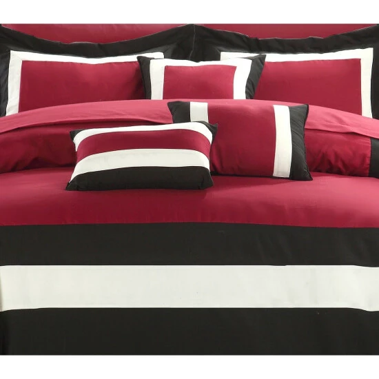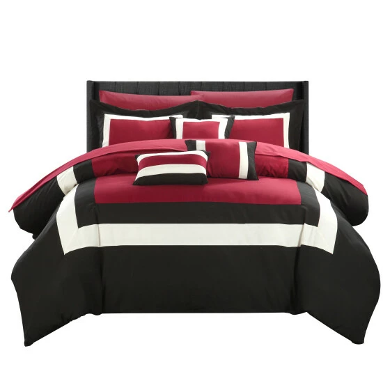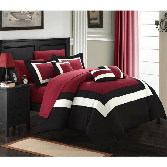 Offer your space simple elegance with this beautiful and comfortable ten-piece comforter set. Featuring a rich color block design in a wide range of colors, this set is a stylish addition to any decor, while the microfiber fabric ensures a luxurious night’s sleep.