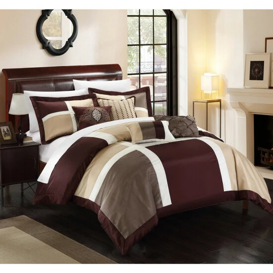 Elegant and Luxurious!! Offering a combination of traditional pure luxury colors paired with a contemporary pattern layout, Amazing hand sewn patchwork details, Luxury embroidery details on the pillows and enjoy a pintuck pinch pleated decorative pillow as a bonus. This set will decorate your master suite with traditional flair and contemporary design.
