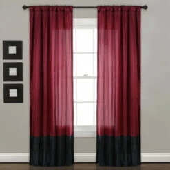 Add a glam focal point to your home with the Moberly panel pair. Made of polyester, this set has a faux-silk look and features a deep red and black color block pattern. Highlight the natural sheen of this set with white and silver decor.