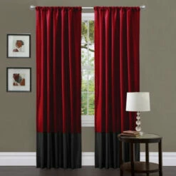 Add a glam focal point to your home with the Moberly panel pair. Made of polyester, this set has a faux-silk look and features a deep red and black color block pattern. Highlight the natural sheen of this set with white and silver decor.