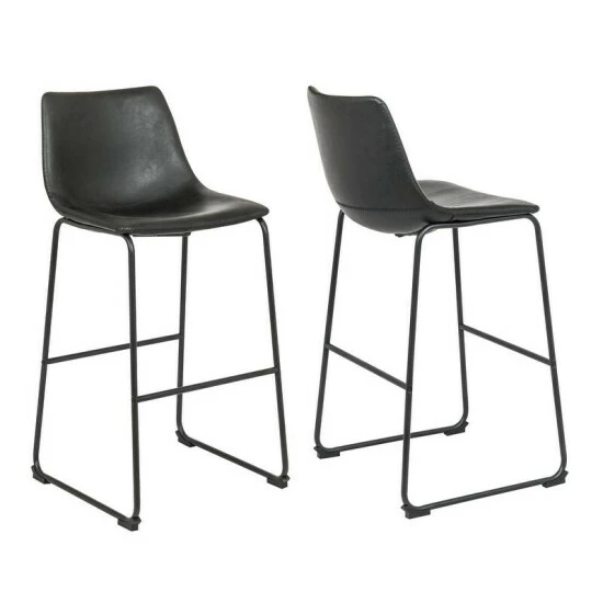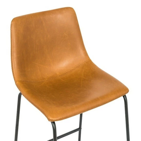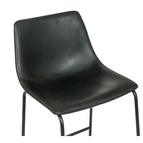 Enjoy this bar stool, in bar height in your home! The Faux leather seat allows for easy cleaning as well as all day comfort. The curved wide seat will increase the comfort level while seated. The steel legs is the sturdy support and element that takes these stools to the industrial design. On the legs are low placed foot rails to help you relax in a comfortable position. This bar stool will complement any decor you are currently sporting in your home.