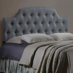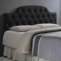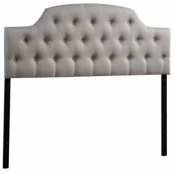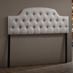 Imbue your bedroom with the calming gracefulness of this headboard. Available with fabric or faux leather upholstery, the headboard features button tufting and a curving shape to complement any decor with timeless elegance. Quality construction and foam padding ensure comfortable support.