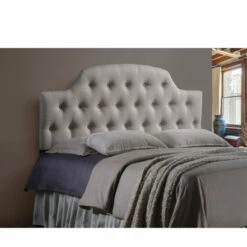 Imbue your bedroom with the calming gracefulness of this headboard. Available with fabric or faux leather upholstery, the headboard features button tufting and a curving shape to complement any decor with timeless elegance. Quality construction and foam padding ensure comfortable support.