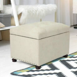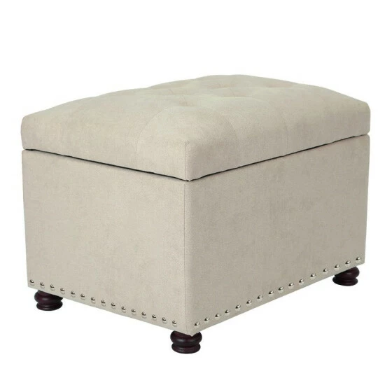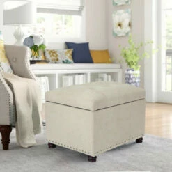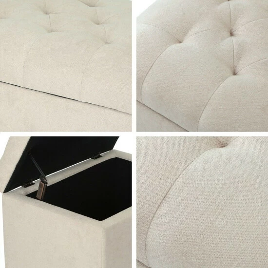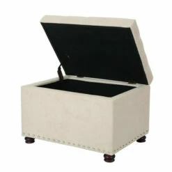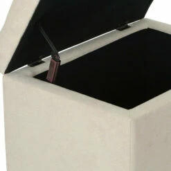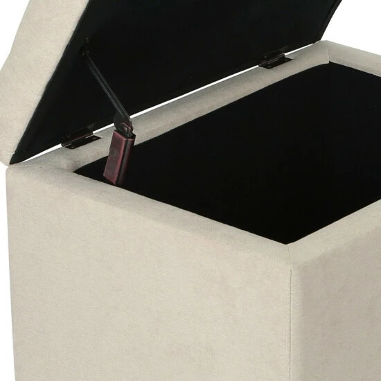 This convenient storage ottoman provides a footrest, seat, and storage all in one. Upholstered in soft cotton-blend fabric, this footstool comes in a neutral cream color that pairs easily with any decor. The top lifts to reveal a spacious storage compartment, perfect for blankets and more.
