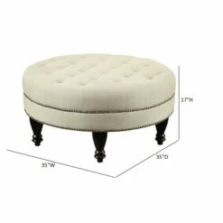 This beautiful Muir ottoman from Copper Grove will add both beauty and comfort to your living room. Place the Muir in front of a traditional sofa so you can rest your feet on top of its padded, button-tufted surface. The oatmeal upholstery and dark brown legs will elevate the look of your decor.