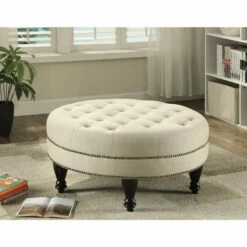 This beautiful Muir ottoman from Copper Grove will add both beauty and comfort to your living room. Place the Muir in front of a traditional sofa so you can rest your feet on top of its padded, button-tufted surface. The oatmeal upholstery and dark brown legs will elevate the look of your decor.