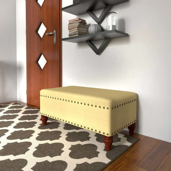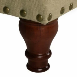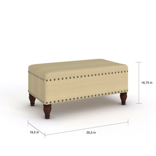 Add style and storage to any room in the home with this classic light tan storage bench. Featuring timeless nailhead trim and spiral wood legs in a light cherry finish, this bench is a multi-tasker. Use it to provide extra seating or extend hospitality as a coffee table ottoman. Put it to work holding pillows or throws as an end of bed bench. Strategically position it in an entryway or mudroom to contain outdoor accessories or shoes. Undeniably a premium addition to your home at a reasonable price, make this the next accent furniture investment. Easy to assemble and maintain.Β
