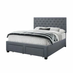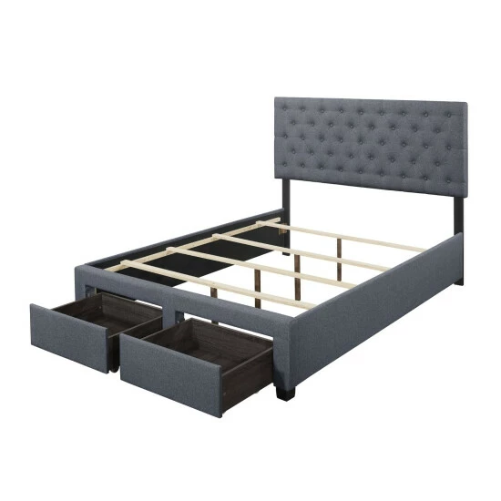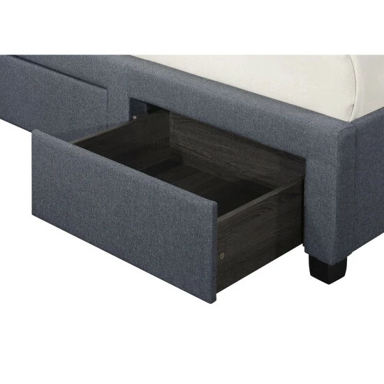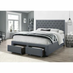 Offering streamlined style to your space and cleverly crafted from solid wood, this design’s boxy frame is wrapped in a robust polyester fabric, for a crisp, tidy look. Button-tufted detailing on the headboard add a touch of classic charm, while two footboard drawers provide under-bed storage, for a clutter-free living space that welcomes you home each time you arrive.Β
